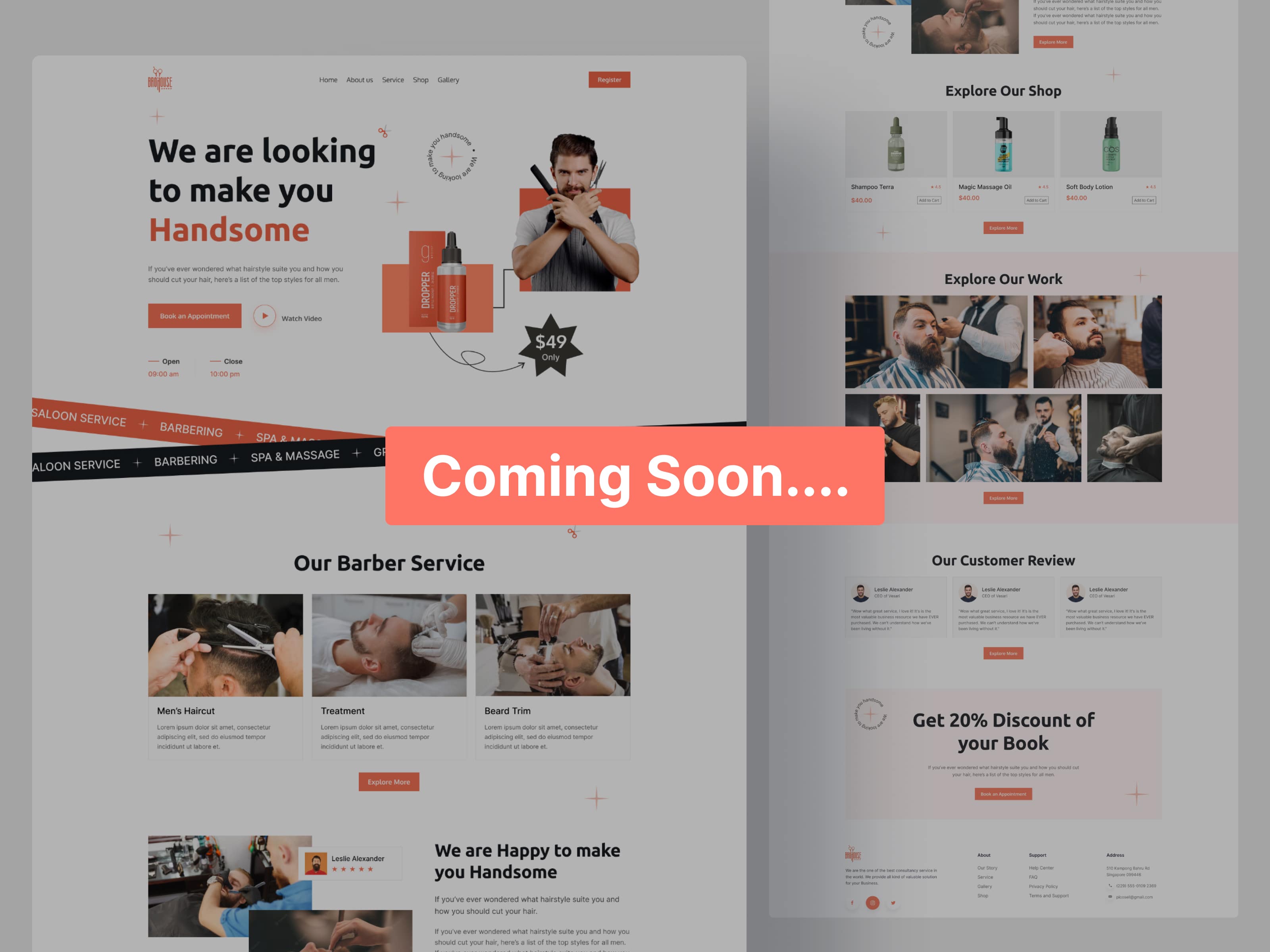 Onlayn növbə və xidmət təqdimatı olan bərbər salonu şablonu.